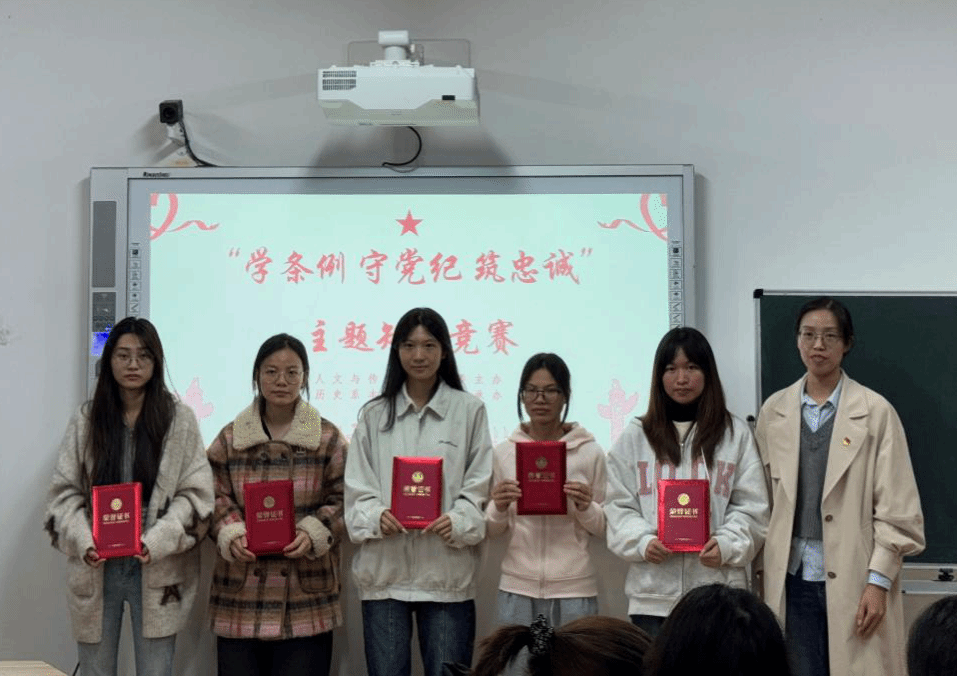 党委主办,历史系本科生党支部承办,共有25名发展对象参加。活动重点围绕《党章》《中国共产党纪律处分条例》以及《中国共产党党徽党旗条例》等党纪党规展开考查,通过知识竞答的形式,寓教于乐,推动关于党章党纪党规的理论学习往深里走、往实里走、往心里走。