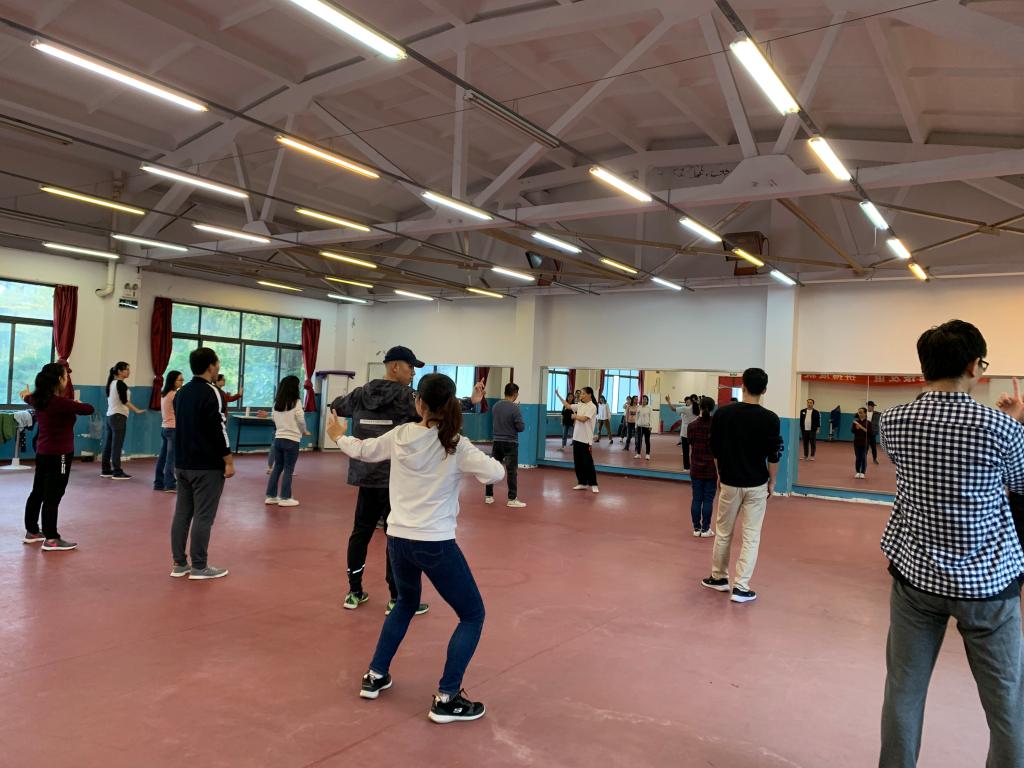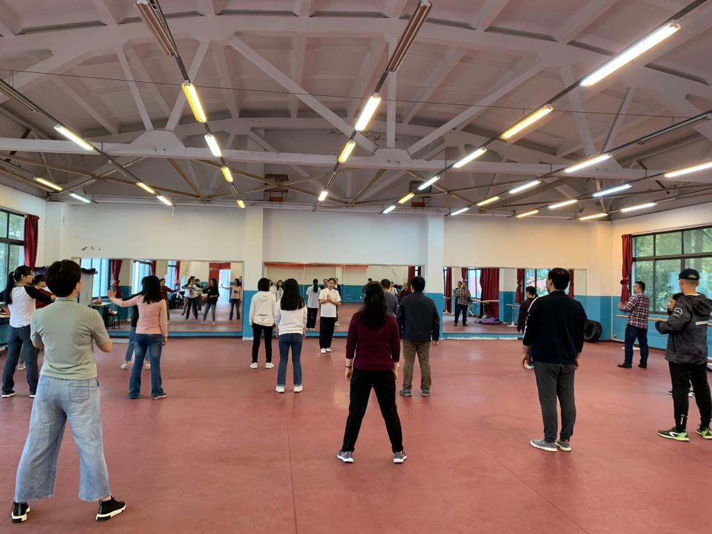 分工会在体育学院形体房组织全院教职工学习八段锦。