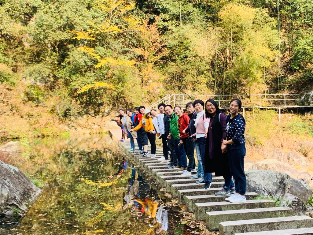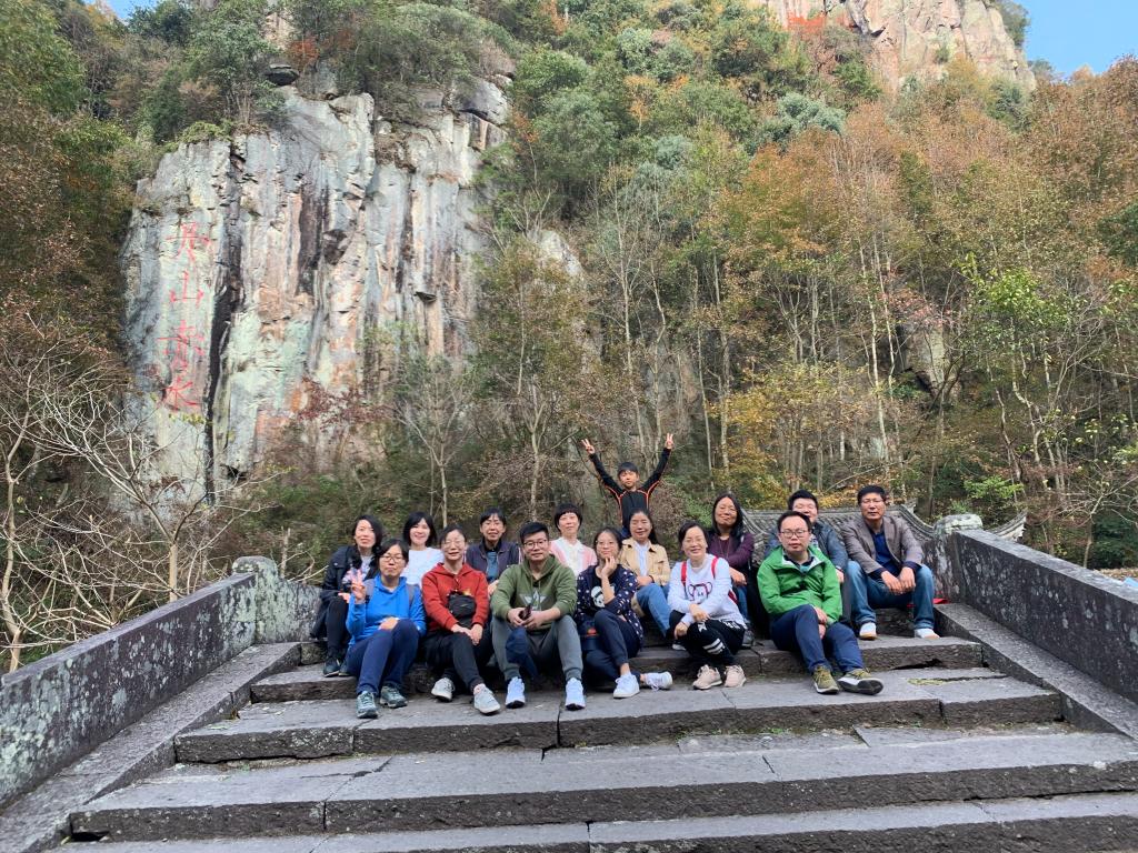 本次活动内容丰富,早上先参观了四明山烈士纪念碑,纪念碑坐落于余姚市梁弄镇西侧的狮子山上,是纪念全国19块抗日根据地之一。碑高18.5米,由花岗石砌成,正面有郭沫若题词的“革命烈士永垂不朽”八个镏金大字。老师们在纪念碑前瞻仰先贤、缅怀先烈。下午又游览了丹山赤水景区,景区以峡谷景观为依托,以道教文化、浙东古山村风情为文化内涵,以绝壁、奇岩、古桥、流溪、飞瀑为特色,景色美不胜收。在饱览风光的同时又进行了教职工徒步登山比赛,尽管山路崎岖难行,但大家兴致勃勃,争先恐后,互相加油着来到终点。在游览过程中,教师们兴趣盎然,气氛和谐融洽,一路观景,一路说笑,其乐融融。