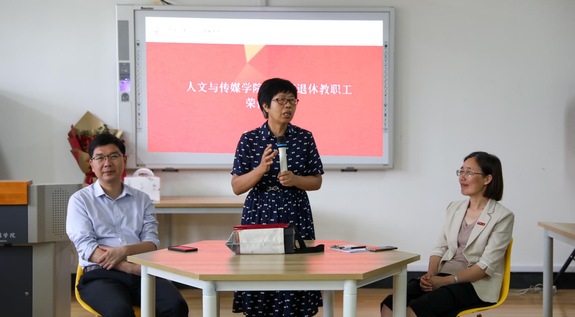 周春英老师表示一朝退休,无限感慨。她非常感谢人文与传媒大家庭给予的这份温暖和关怀,也感谢同仁们这些年来的支持和帮助。她希望年轻人鲲鹏展翅,早日成长;希望领导们工作顺遂;希望即将步入退休年龄的人也像她一样积极乐观。