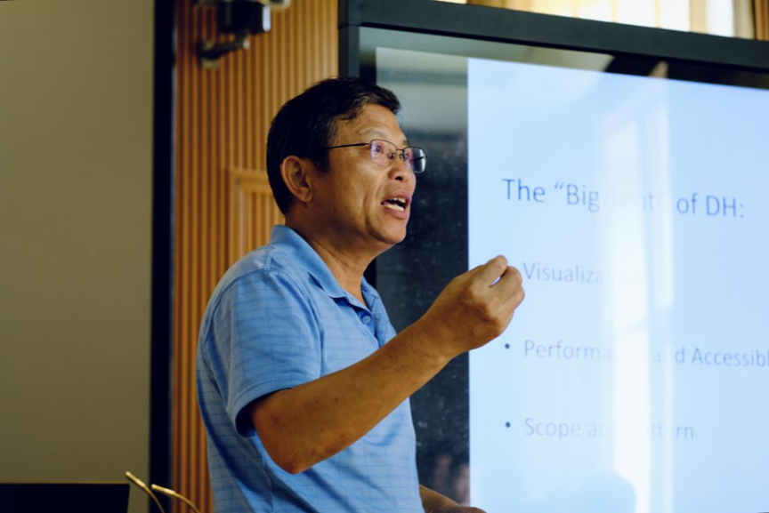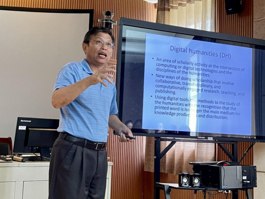 做了题为《数字人文与AI》的学术讲座。讲座由新闻传播学系主任张斌宁教授主持。