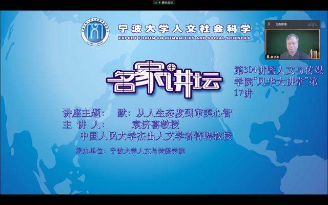,为我校师生作了题为“默:从人生态度到审美心智”的线上学术讲座。讲座由擦边直播