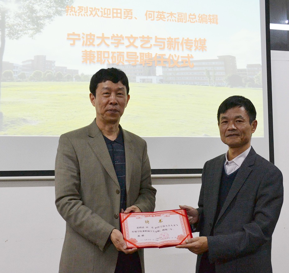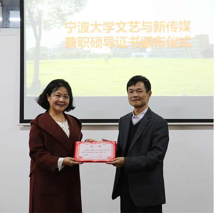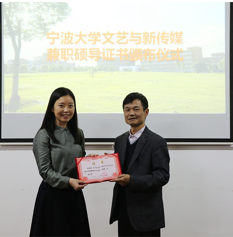 “文艺与新传媒”硕士点分别为宁波日报报业集团的田勇副总编、何英杰副总编和宁波广电集团的徐明明副总裁、毛洲英总监、李飒主播举行了兼职硕士生导师聘任仪式。擦边直播