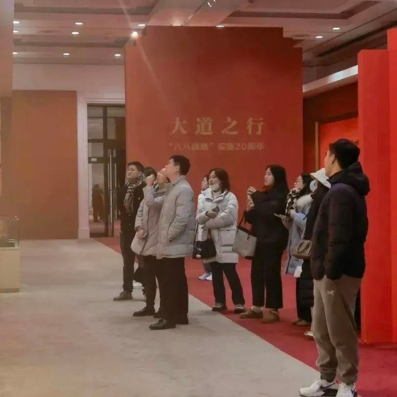 下午,学院一行人集体参观了大道之行——“八八战略”实施20周年大型主题展览,依次走进“伟大擘画”“精彩蝶变”“勇立潮头”综合展区和“共谱华章”地方展区,重温习近平新时代中国特色社会主义思想在浙江的实践历程,在“循迹溯源”中生动了解习近平总书记留给浙江的宝贵理论财富、实践财富和精神财富,深刻领略“八八战略”的丰富内涵、独特优势与时代价值。