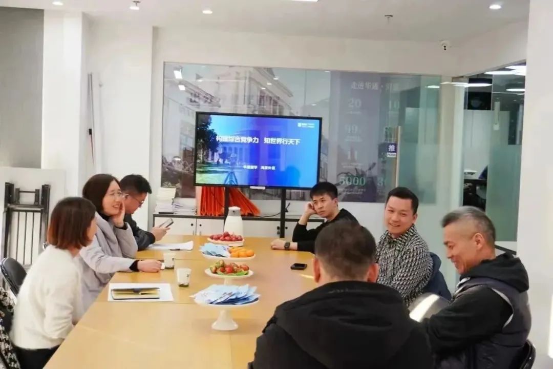 教师教育学院教授、课程与教学研究所所长郑东辉,校友会秘书长2000级汉语言/2004级中国史校友、宁波广电集团广播战略发展中心副总监叶赵明,校友会副秘书长2010级广告学校友、宁波寻绘启示文化传媒有限公司总经理魏睿一行首先参观考察了校友企业——宁波海曙华通海派出国留学有限公司,受到该公司总经理、学院校友会副会长、1995级广告学校友吴东凯的热情接待。