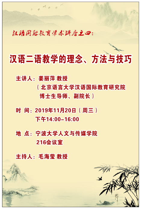 主讲人简介:博士生导师。主要研究方向为汉语作为第二语言教学理论、教学法、教材研究和教师培养研究。出版专著、合著有《对外汉语教学论》、《汉语作为第二语言课堂教学》、《怎么教外国人汉语》等10部;主编国家汉办授权教材《HSK标准教程》系列、国家汉办规划教材《体验汉语教程》系列等五套80多册;发表学术论文30多篇;主持教育部重点基地重大项目、国家汉办项目等10项。主持研发并已出版国家汉办《HSK考试大纲》和《YCT考试大纲与应考指南》。多次受邀赴美国、日本、泰国、荷兰、瑞士、法国、古巴等国家进行讲学、培训和学术交流。西安外国语大学特聘讲座教授、北京化工大学兼职教授等。担任《国际汉语教学研究》、《国际汉语教育》(中英文版)、《汉语国际教育学报》编委等。