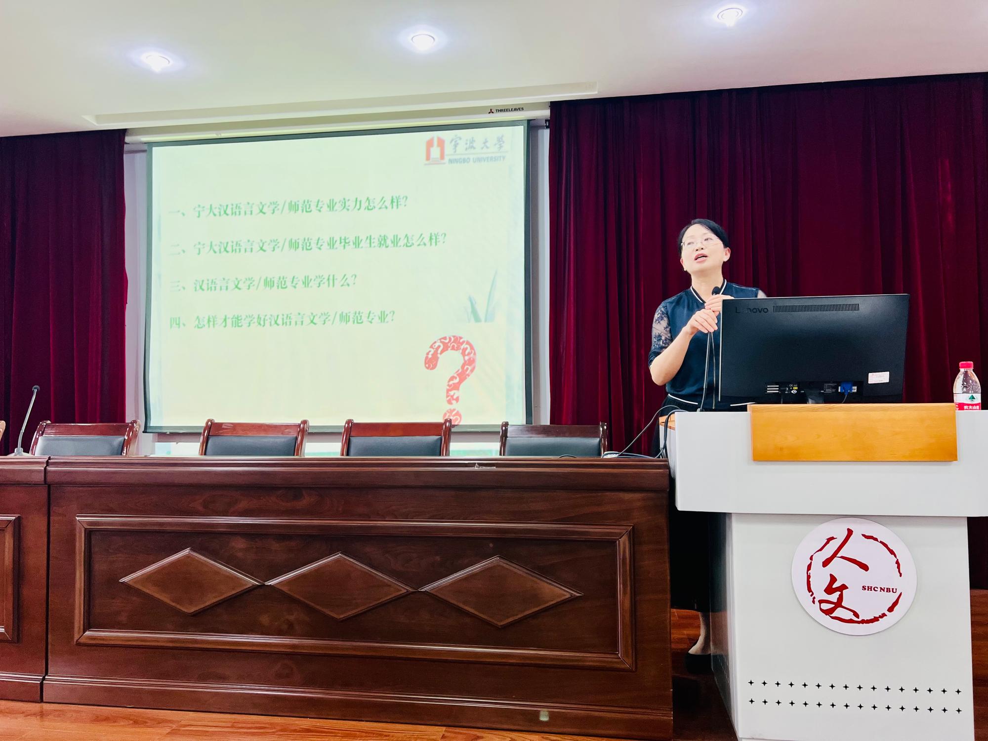 ,中文学系胡泽球老师详细介绍了汉语言文学、汉语言文学(师范)专业的主要学习内容、就业前景等内容,并就学生们提问的问题进行解答。通过此次活动,同学们对专业也有了更加深刻的认识与了解。