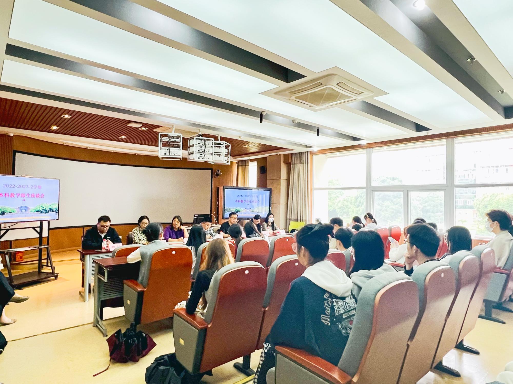 在10-104召开2022-2023-2学期本科教学工作师生座谈会。学院分管本科教学副院长田力、学院教育督导委员会主任周莉萍、学院督导徐琼、中文系主任周景耀、中文系副主任李晓琴、新闻传播系副主任王丽、历史系副主任杨懿、教务办全体老师以及2020级、2021级、2022级各班学生代表参加了此次座谈会。