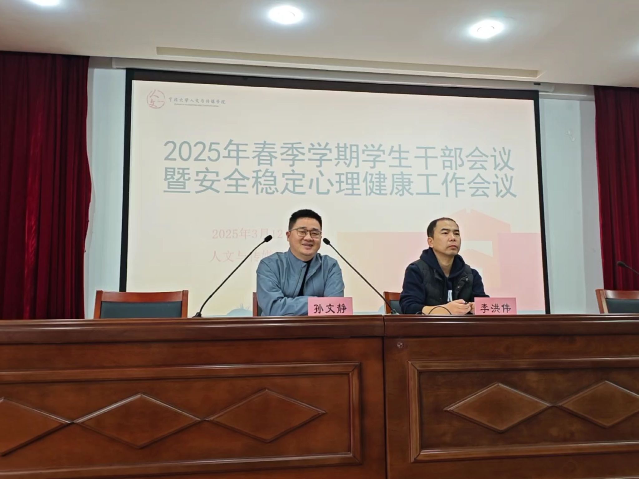 召开2025年春季学期学生干部大会暨学生安全稳定工作会议。学院党委副书记孙文静,学院全体辅导员,学院团委、学生会、研究生会学生骨干以及各班级班长、团支书、学习委员、心理委员等主要学生骨干110余人参加会议。会议由学工办主任李洪伟主持。