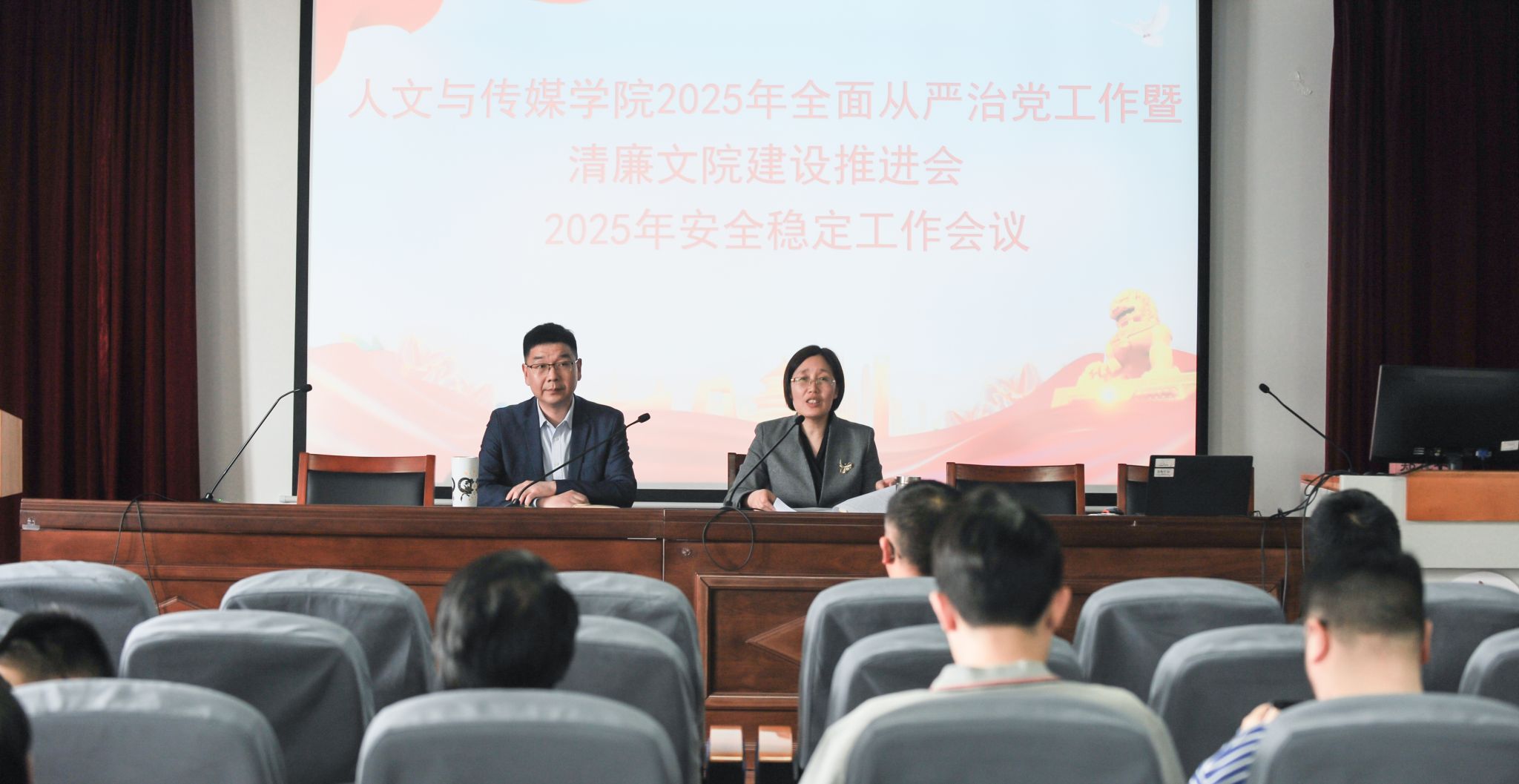 召开2025年全面从严治党暨清廉文院建设推进会、2025年安全稳定工作会议。学院党政领导班子成员及全体教职工参加会议。