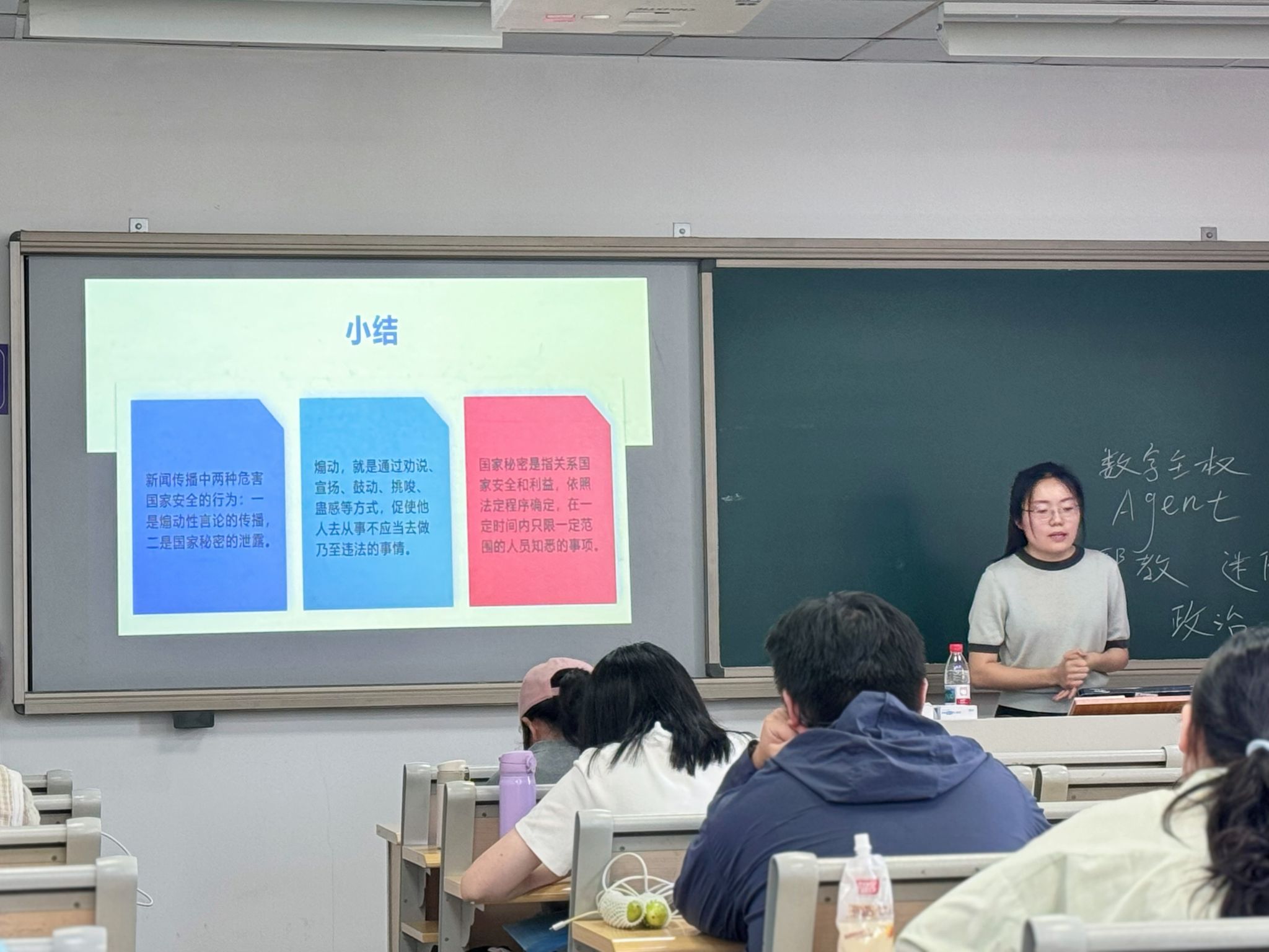 传播学系贾牧笛老师在8-205教室,面向全校师生开展《传播法规与伦理》课程思政公开观摩课。学院领导、本科教学督导、传播学系副主任及众多青年教师到场,共同观摩学习。