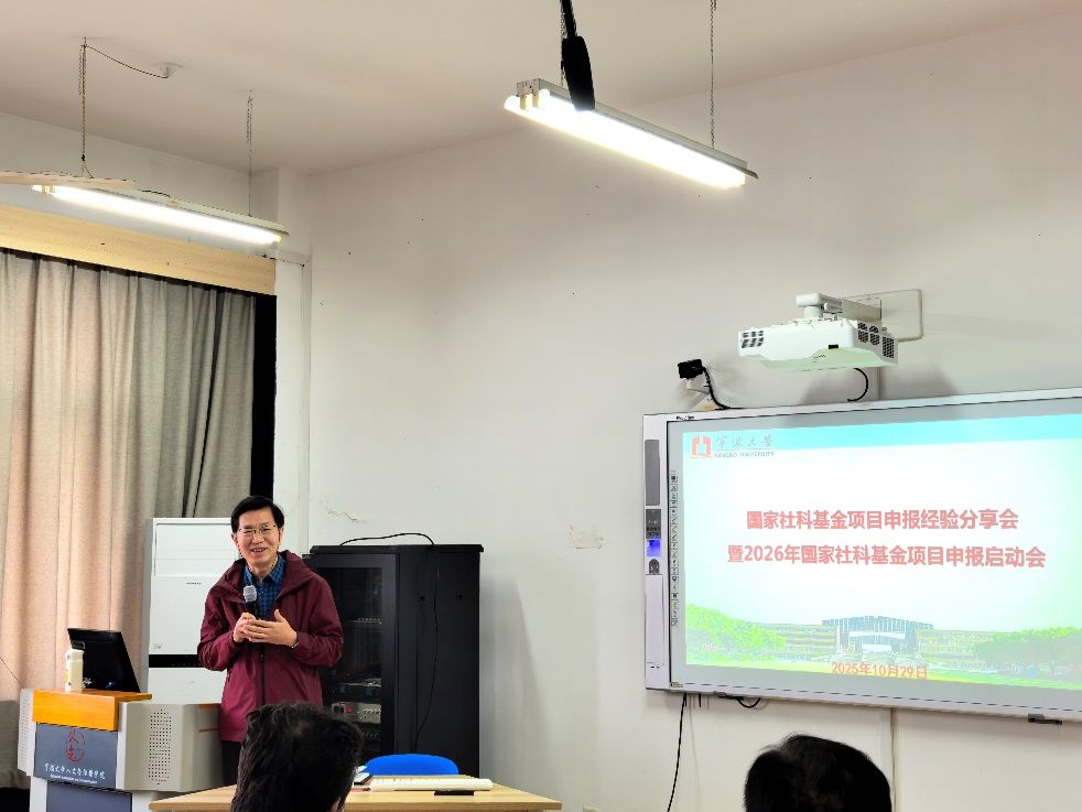 召开国家社科基金项目申报经验分享会暨 2026 年度申报启动会,为新一轮国社科项目申报按下“加速键”。会议紧扣 “有组织科研” 与 “高质量发展” 双主线,通过国家社科基金主持人刘恒武、王刚、屈啸宇三位教师的经验分享,及申报工作部署,有效凝聚全院科研力量。学院副院长田启涛主持会议,全院二十余位教师参会。