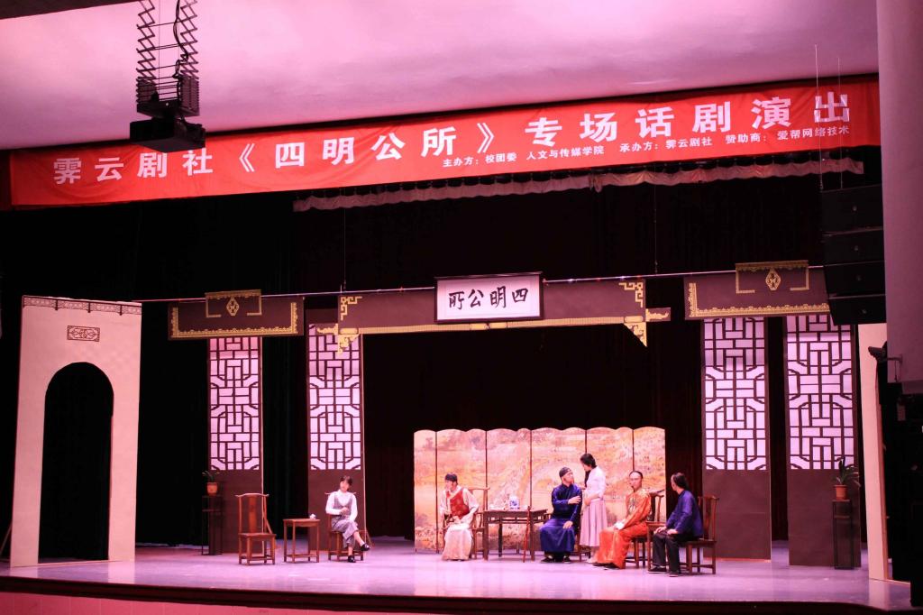 2017年5月6日晚,人文学院霁云剧社原创话剧《四明公所》于林杏琴会堂上演,校团委、人文学院领导、老师与800位同学一起观看演出。