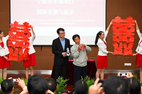 汉语国际教育文化实践基地。这些文化实践基地分别来自宁波十个县市区,涉及舞龙、舞狮、龙舟竞渡、内家拳等民间表演类非遗项目,木雕、竹根雕、青瓷、剪纸、农民画、骨木镶嵌、泥金彩漆等传统美术、传统技艺类非遗项目,慈孝文化、婚俗文化、饮食文化、渔文化、博物馆文化、海洋民俗等民俗文化类非遗项目。