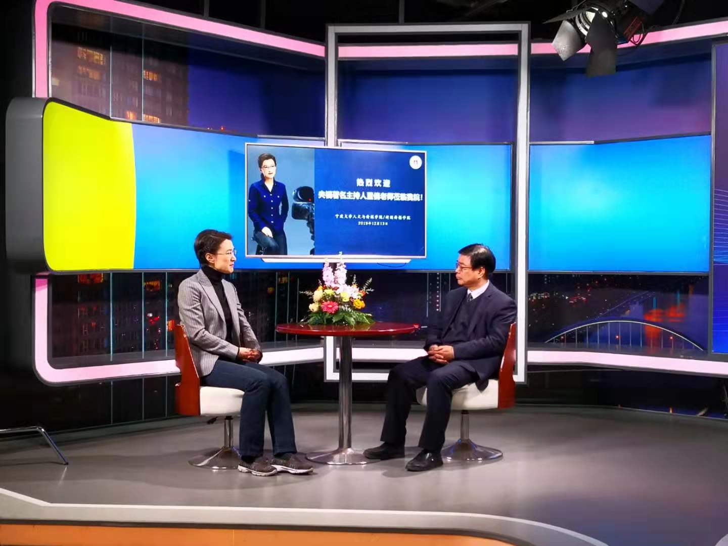 历史系、公众史学研究中心主任钱茂伟教授,部分新闻学与历史学专业师生参与了现场观摹教学。访谈由陈剑平院士、钱茂伟教授共同策划的,既希望引进央视名嘴,扩大宁大乡村政策与实践研究、公众史学研究的社会影响力,同时也想尝试建立宁大的“面对面”访谈节目。