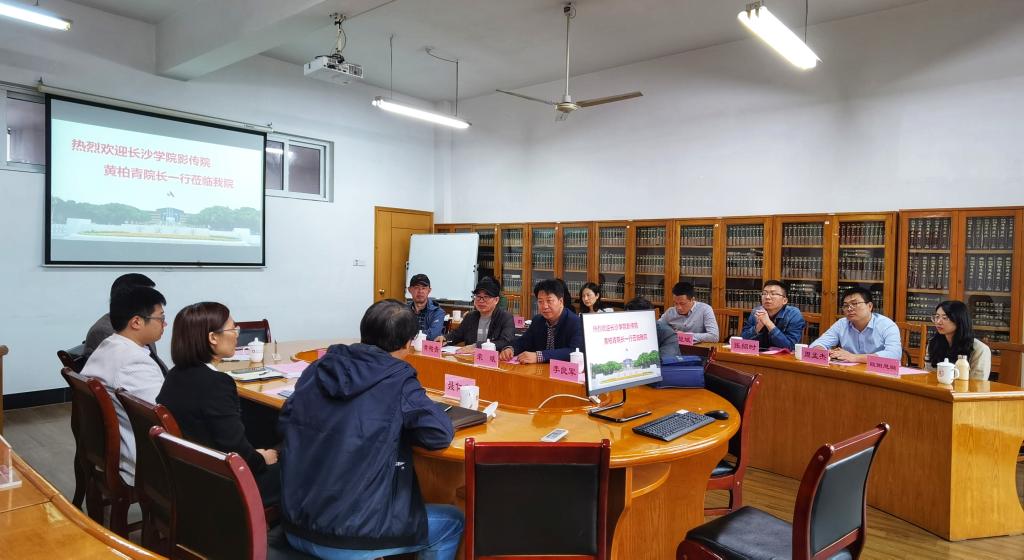 会上,张佩芬代表学院对黄柏青院长一行人的来访表示欢迎,并介绍了学校和学院的发展历程,以及近年来的发展情况。黄佰青介绍了长沙学院及影传学院的发展历程和发展现状,并表达了学习兄弟院校相关工作经验的愿望。