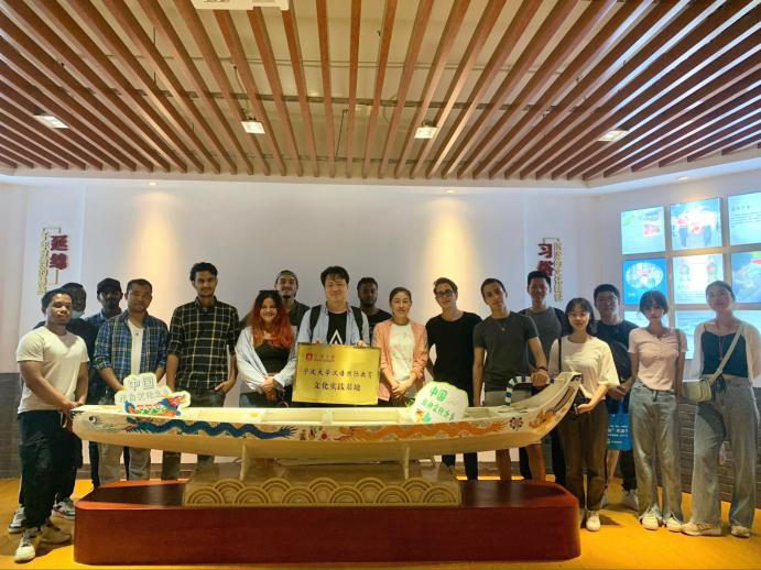 屈啸宇老师和王林哲老师的带领下,来自马达加斯加、摩洛哥、俄罗斯、委内瑞拉和加拿大等国的留学生,以及汉语国际教育研究生共20余人前往云龙镇龙舟文化实践基地,参加第十三届“我们的节日,端午看云龙”大型民俗活动,体验龙舟竞渡文化。