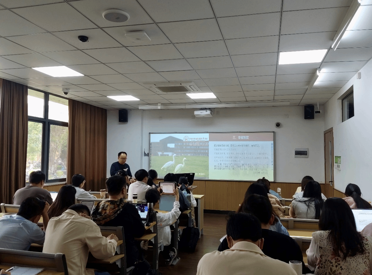 本次课程内容为“唐代政治制度”李翔老师重点讲授了唐代的中枢体制由前期到中晚唐时期的变化,及唐代宰辅制度。详细介绍了中书、门下、尚书三省自魏晋南北朝以来的发展,唐前期三省六部制的组成及御史台、九寺的职官设置等,并指出三省六部制实际在唐前期运行,在高宗、武后时期便开始有了变化;讲解了唐代地方的行政区划道、府州、县,以及学者对于唐代地方行政制度的学术争议及其原由。李翔老师结合课程思政,指出经济基础决定上层建筑,安史之乱后复杂的军政环境,商品经济的发展导致三省六部制难以继续实施,使职差遣制开始大为兴盛,中枢体制也有了较大变化,并举例说明唐代盐铁转运使出现的必然性。此外,李翔老师引用陈寅恪先生的学术观点,唐相薛元超的史料及“黄粱一梦”的典故来加深同学们对于唐代官制及社会风貌的了解,并指出宋代官制之所以复杂实脱胎于中晚唐时期,学习政治制度史,应做到“瞻前顾后”。