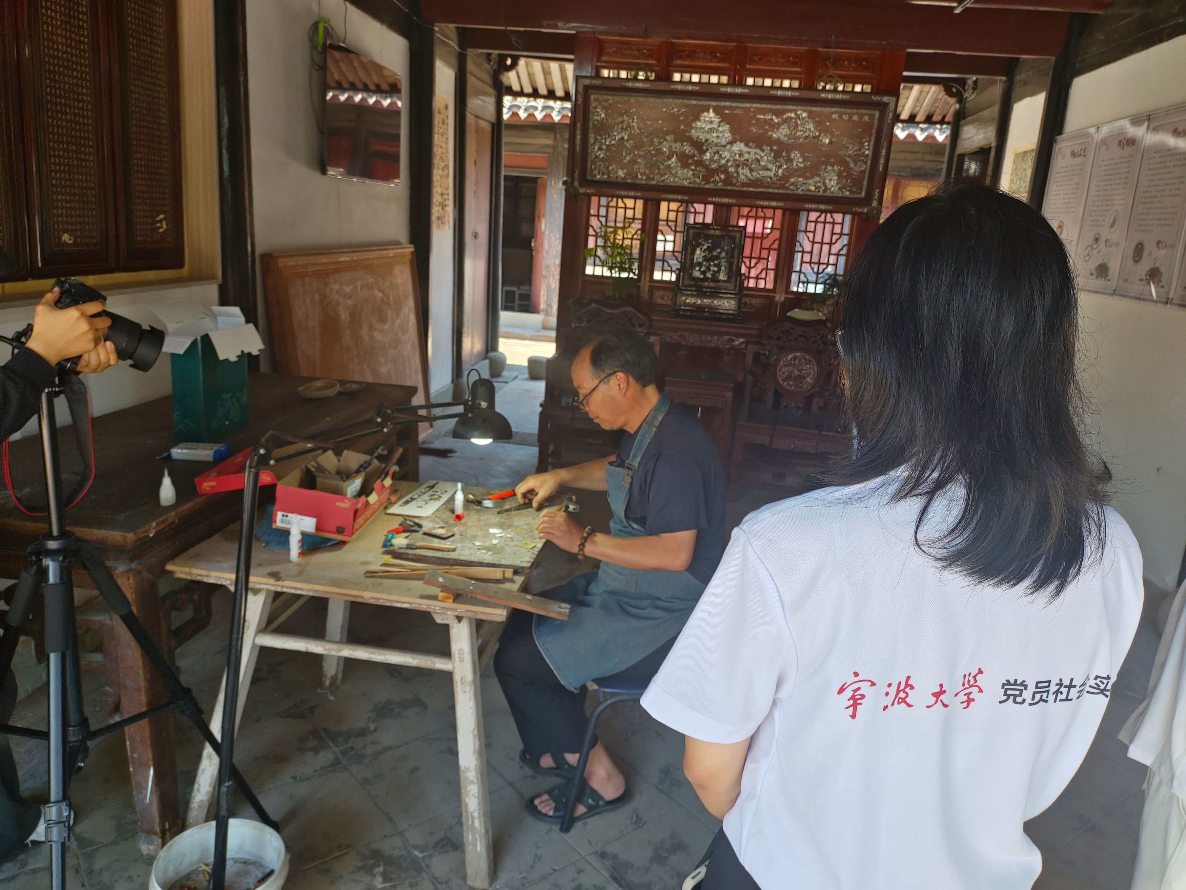 螺钿镶嵌传承人邵益达老先生表示:“现在对古典文化感兴趣的年轻人不多,你们能够来慈城宣传诗意语文,对我们文化的传承也会有很大的帮助。无论是字画还是诗词,都是宝贵的文化,都需要越来越多的人一起发扬和传承!”
