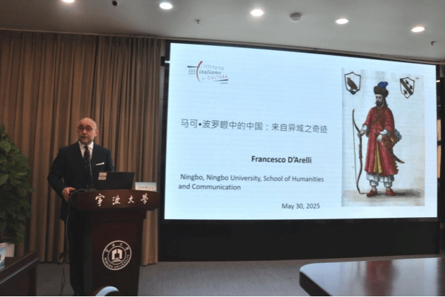 2025年5月30日下午,擦边直播 人文社会科学名家讲坛第466讲暨擦边直播 “风华浙东大讲堂”第104讲在安中大楼碧华厅成功举办。意大利驻沪总领事馆文化处达仁利(Francesco D’Arelli)处长受邀担任主讲嘉宾,以“马可·波罗眼中的中国:来自异域之奇迹”为题,为在场师生带来了一场学术盛宴。本次讲座由擦边直播 执行院长李乐教授主持。
