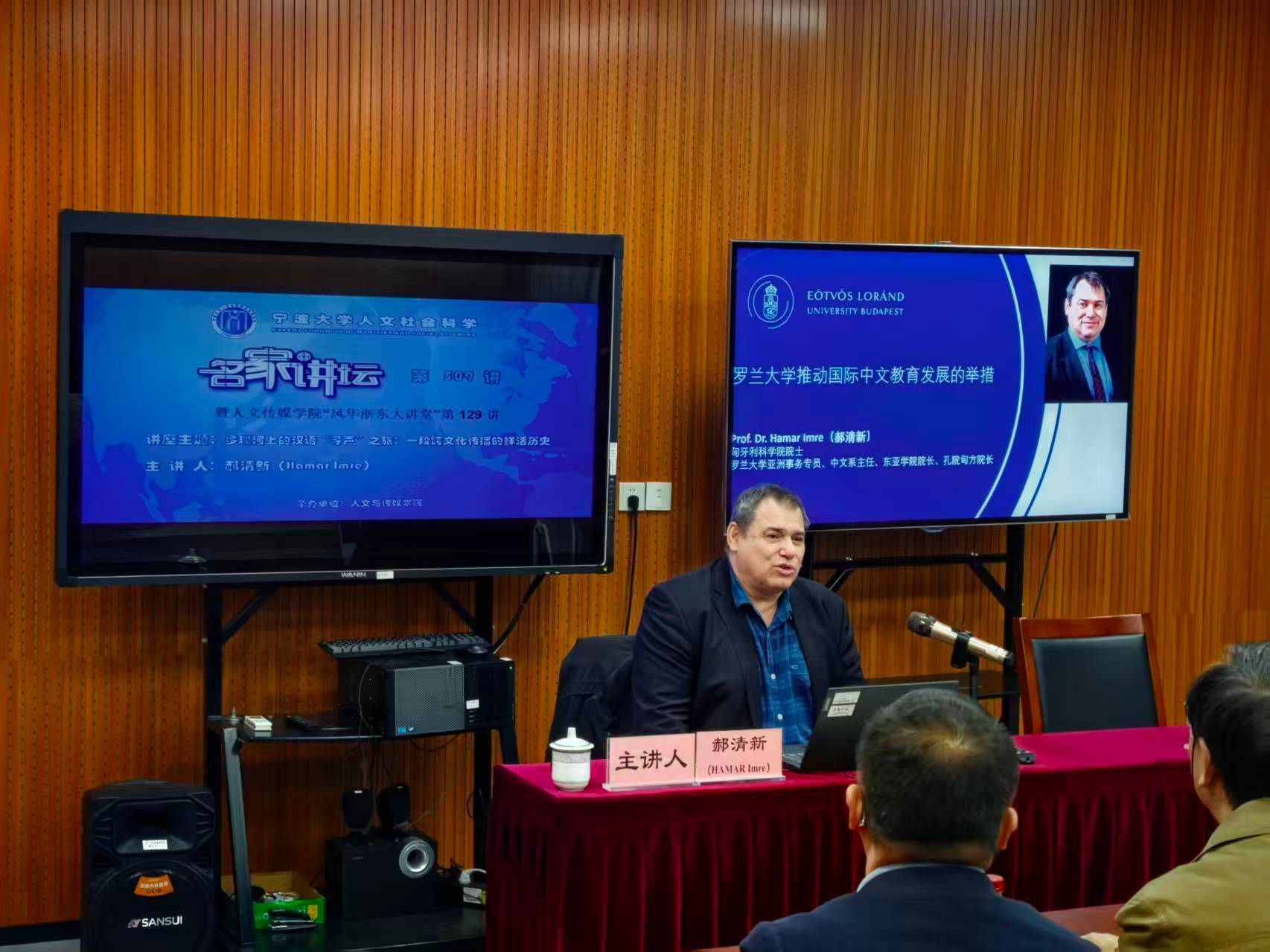 “风华浙东大讲堂”第129讲举办。匈牙利科学院院士、罗兰大学副校长郝清新(Hamar Imre)应邀作了题为“多瑙河上的汉语‘寻声’之旅:一段跨文化传播的鲜活历史“的专题讲座。讲座由擦边直播